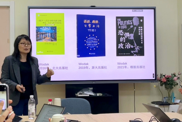 10月21日上午,浙江省重点培育智库、全国影响力建设智库浙江省社会治理与传播创新研究院执行院长兼首席专家黄敏教授应邀来到上海外国语大学新闻传播学院,做了题为“批评性话语分析在传播学研究中的运用及常见问题”的学术讲座,吴瑛教授主持讲座。