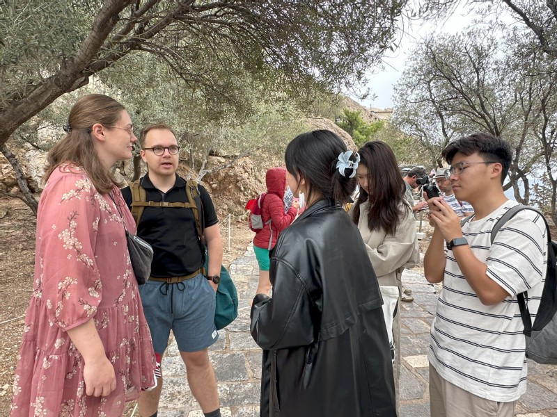 Divided into three groups, students explored the intersections of ancient civilization and modern life—interviewing local artisans, business owners, and tourists; visiting cultural landmarks such as the Acropolis and the Ancient Agora; and examining topics from urban life and youth communication to work culture and creative industries.