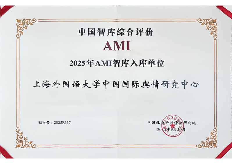 The Center for Global Public Opinion of China at Shanghai International Studies University (SISU) has been included in the China Think Tank Comprehensive Evaluation Project (2025) AMI Think Tanks roster, recognizing its growing influence in research on global perceptions of China and international communication.
