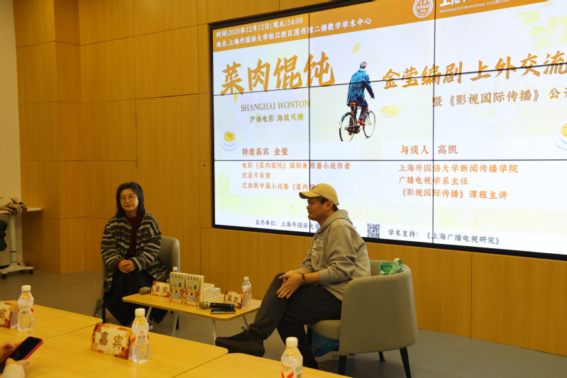 Jin Ying, screenwriter and original author of Shanghai Wonton, delivered a guest lecture at Shanghai International Studies University (SISU) on December 12, 2025, as part of the open class for International Film and Television Communication. The session took the form of an in-depth dialogue between Jin and course instructor Dr. Gao Kai.